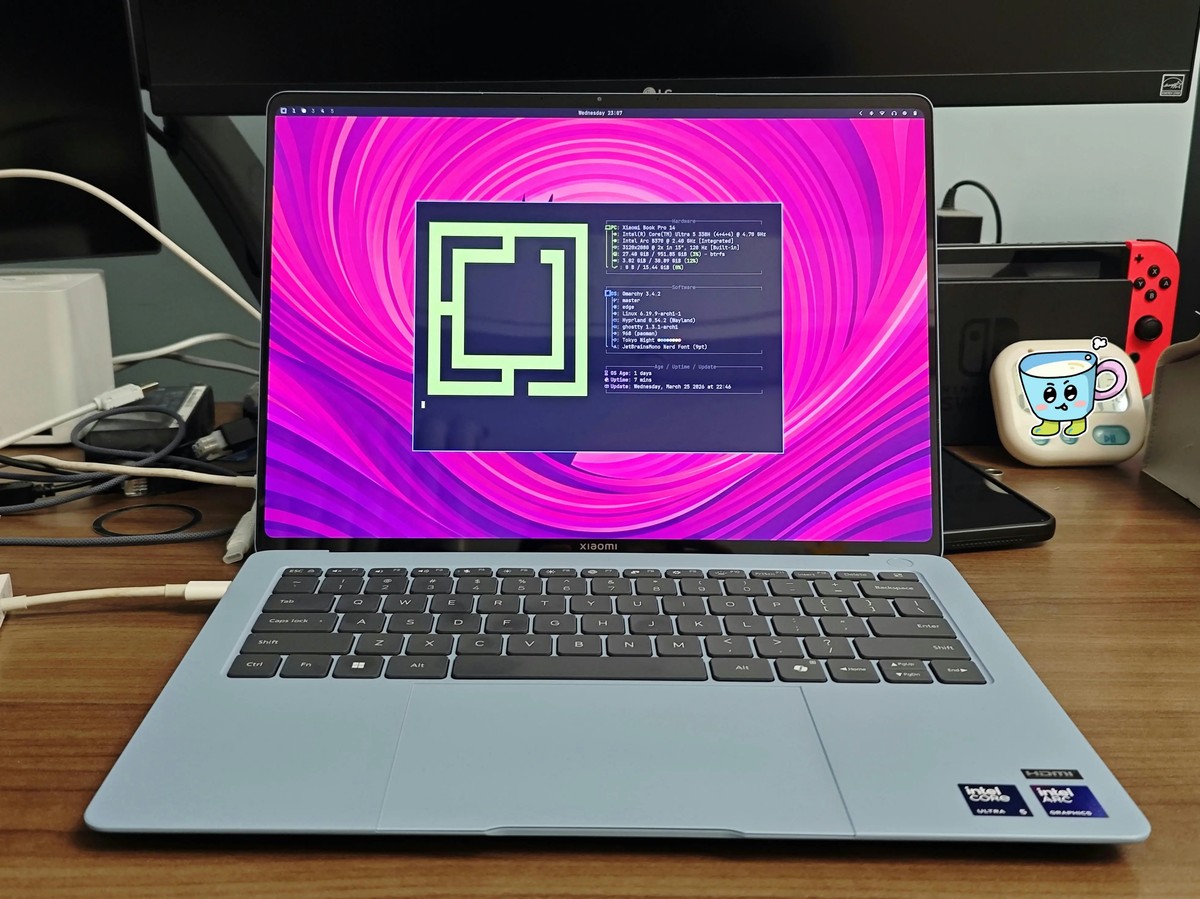 Intel 新发布的第三代 Ultra 处理器看测评非常给力,于是我首发购入了 Xiaomi Book Pro 14 (2026) ,这台机器的模具非常像荣耀的 art 14 或者华为的 matebook pro x,重量只有 1kg 左右。但是由于设备太新了,Omarchy(Arch Linux) 下有很多驱动不支持的情况,这篇文章记录下各种硬件设备的处理办法。